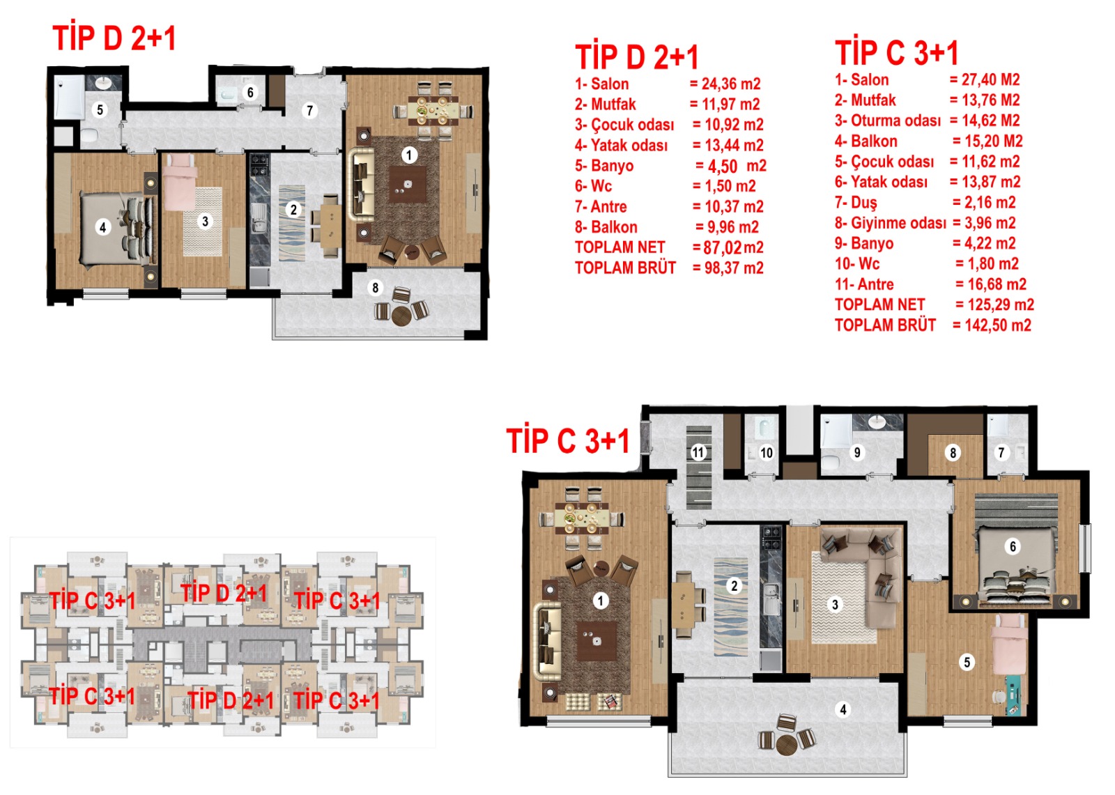 Ravza Life’ta her zevke ve ihtiyaca uygun daire alternatifleri sizi bekliyor. 2+1 ve 3+1 daire tipleriyle hem aileler hem de modern şehirli bireyler için ideal yaşam alanları oluşturuldu. Geniş pencereler, gün ışığını evinizin her köşesine taşırken; ferah balkonlar Ankara manzarasını evinize getiriyor.