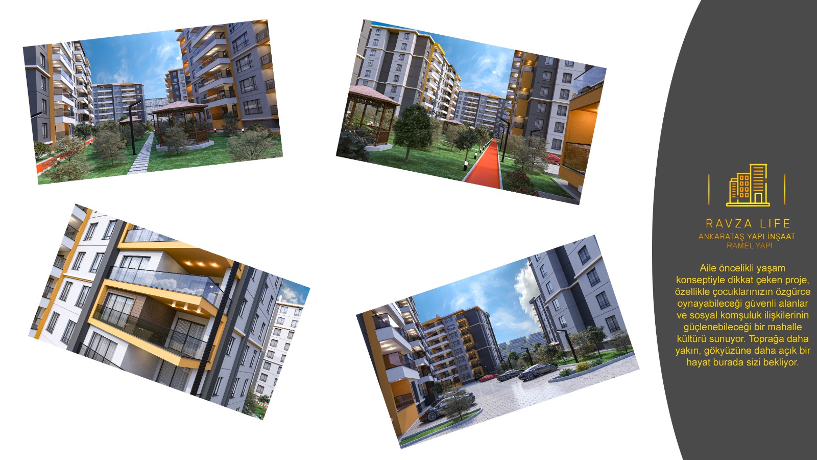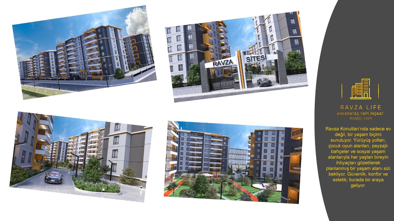Ankara’nın yükselen yaşam alanlarından birinde, Köypark’ın hemen yanında konumlanan Ravza Life, size şehir hayatının merkezinde sakin, konforlu ve güvenli bir yaşam sunuyor. Doğayla iç içe, modern bir mimarinin zarafetini taşıyan Ravza Life; estetiği, kaliteyi ve huzuru bir araya getiriyor.